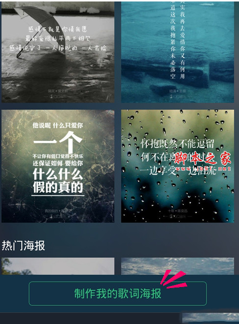 3、點擊進入后你可以看到系統推薦的幾款熱門海報樣式,你也可以點擊[制作我的歌詞海報]從零開始創作海報。