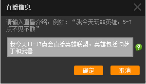 Step9:點擊“開始直播”后需要輸入直播介紹;直播介紹填寫完后屏幕中間按鈕更改為“取消等待”,此時請打開所要直播的游戲(目前YY游戲直播支持上千款主流游戲,可在“游戲支持列表中”查看)。