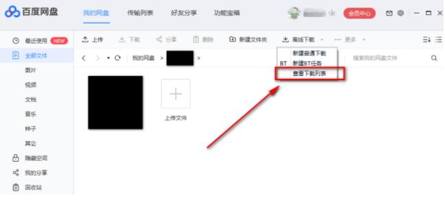 打開百度網(wǎng)盤,進(jìn)入界面,點(diǎn)擊“離線下載”,
