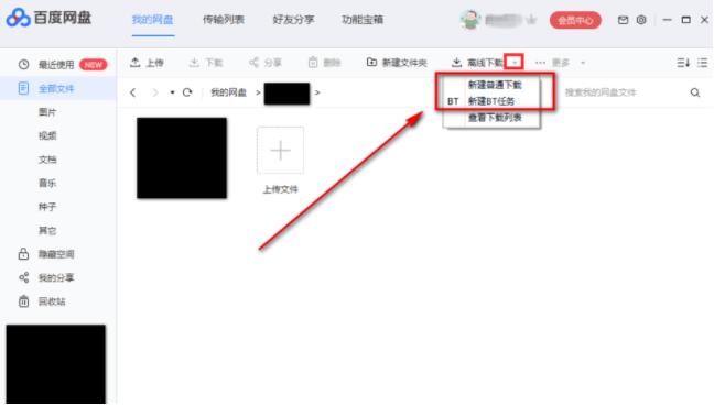 也可以點(diǎn)擊“離線下載”旁邊的倒三角,選擇普通下載或者BT下載,