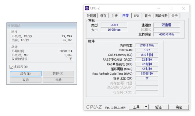 如圖,通過測試成績我們可以看到,內存頻率的高低對解壓縮的成績影響依舊十分明顯。最終在3600MHz頻率下,解壓縮成績為25163KB/s,據2133MHz頻率的提升相當明顯,達到了19%的差距,這也進一步驗證了高頻率即高性能的觀點。