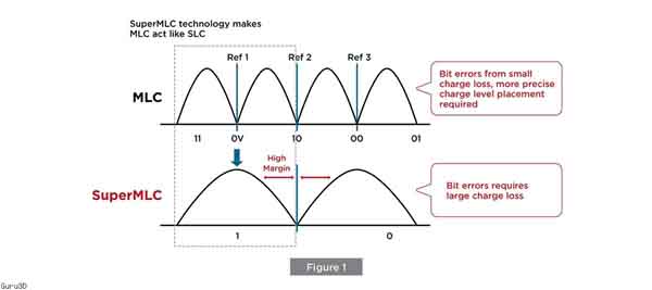 由此,SuperMLC的速度(連續寫入)將比MLC快2倍,壽命延長10倍之多,提供高達3萬次的PE(可編程擦寫)。