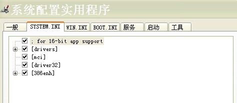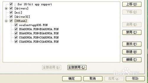 4、重復第一、二兩步驟,打開的窗口選擇第二個選項卡“System.ini”,在下屬的文件列表中雙擊“386Enh”選項,看下圖。