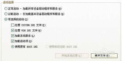 2、在打開的窗口,在第一個“一般”選項卡中選中“選擇性啟動”看下圖。取消“處理System.ini文件”選框(取消前面的打勾),再單擊“確定”按鈕,看下圖。