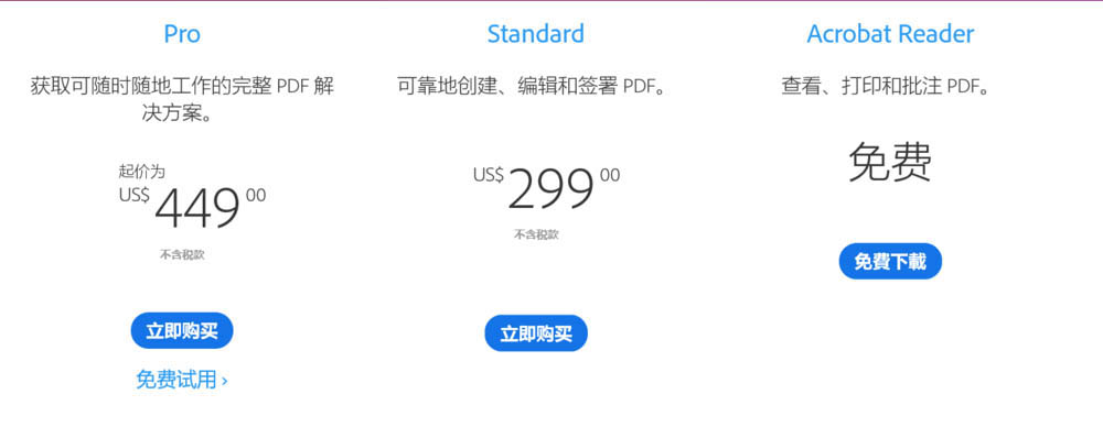 上面了解了兩個(gè)軟件的淵源,我們接下來(lái)說(shuō)說(shuō)目前市場(chǎng)上的版本,大致有3個(gè),adobe reader ,adobe acrobat pro ,adobe acrobat DC