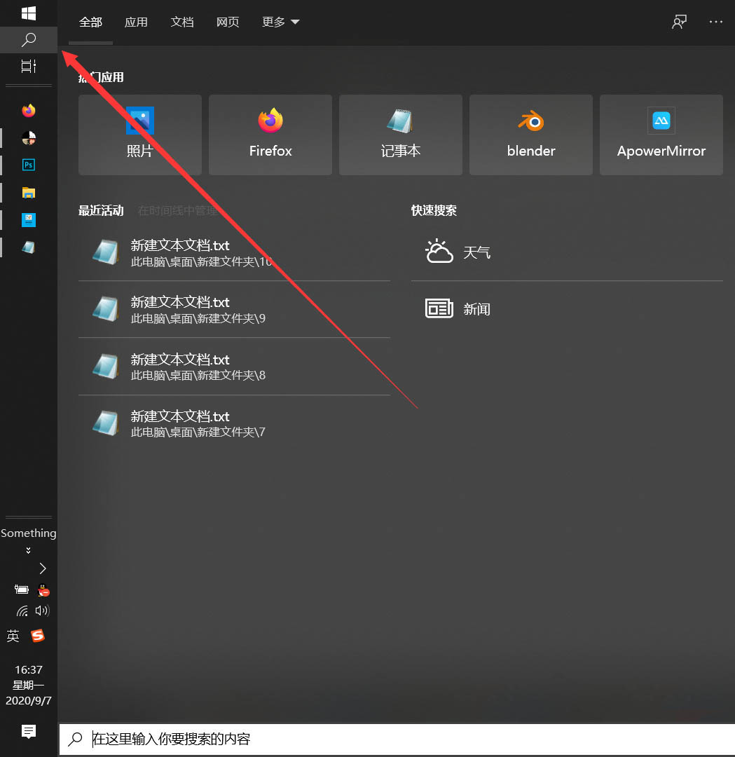 1、首先,我們需要點擊任務欄中的“搜索”按鈕,進入系統的搜索界面。