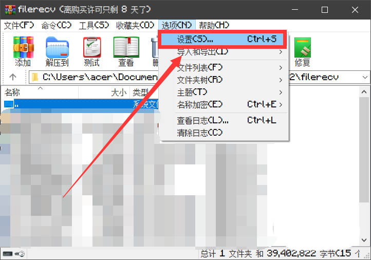 4、在選項菜單中,選擇“設置”按鈕,進入軟件設置界面。