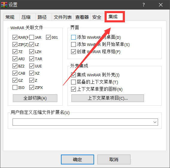 5、在軟件設置界面中,我們需要點擊上方的“集成”選項卡,進入集成設置界面。