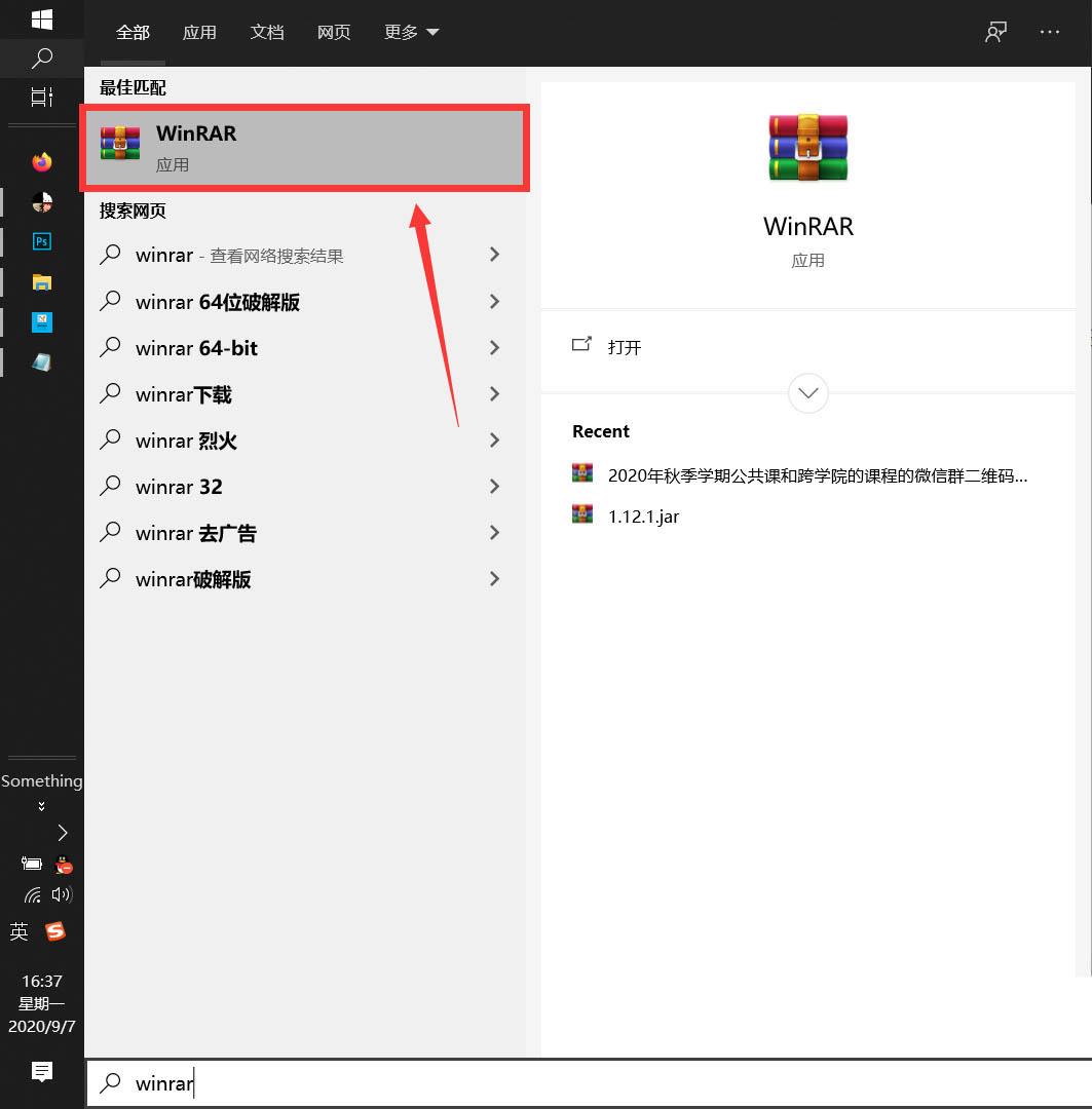 2、在系統的搜索界面中,我們需要搜索“WinRAR”軟件,并點擊應用進入軟件界面。
