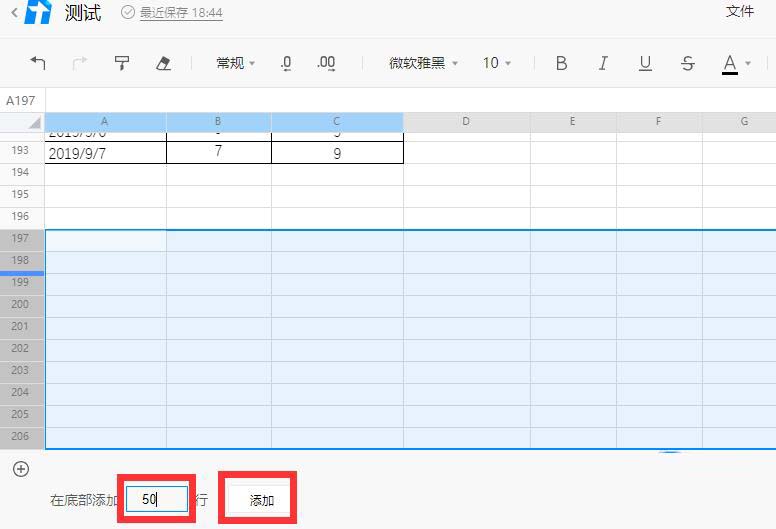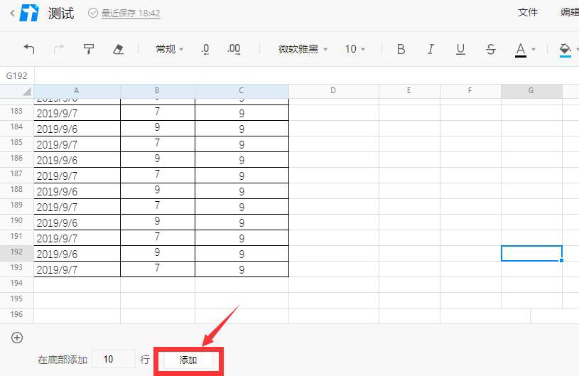 4、如果需要的數(shù)據(jù)行較多,可以直接點擊底部的“添加”,默認一次添加10行