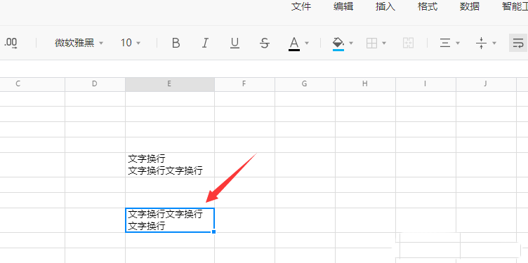 2、輸入文字后,點擊自動換行的圖標,單元格文字會根據列寬自動換行
