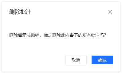 2、在彈出的刪除批注確認框中,點擊下方的確認即可成功刪除批注。