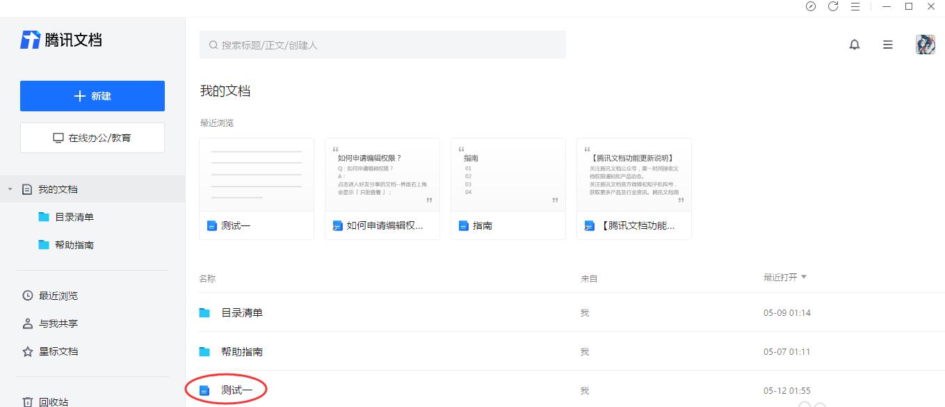 1、打開騰訊文檔,在騰訊文檔-我的文檔界面中選擇需要使用批注功能的文檔。