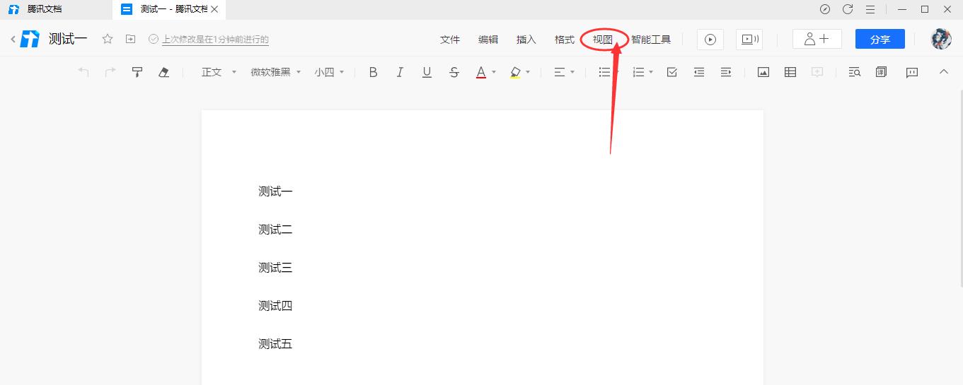 2、跳轉到文檔界面后,點擊文檔界面上方一欄中的視圖選項。