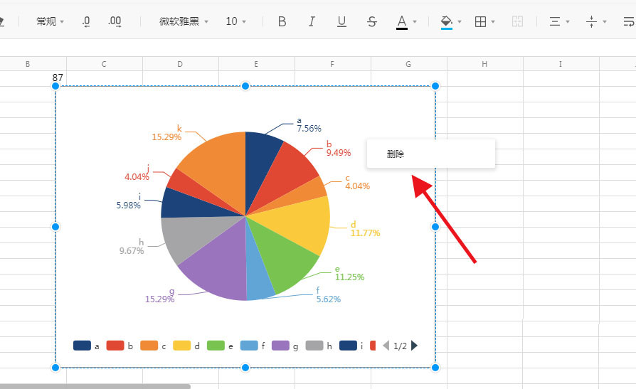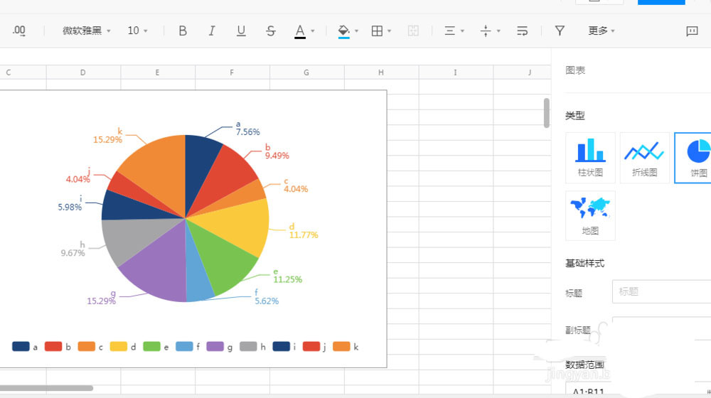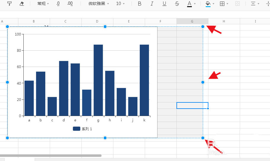 4、直接點擊圖表周圍的操作點,可以調節大小。