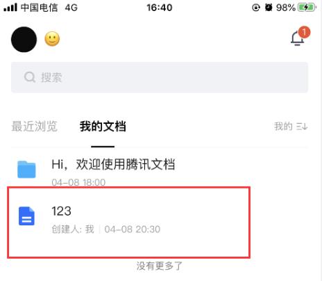 點擊軟件圖標進入騰訊文檔找到自己要置頂的文檔向左邊滑動后選擇更多選擇第一個“置頂”即可