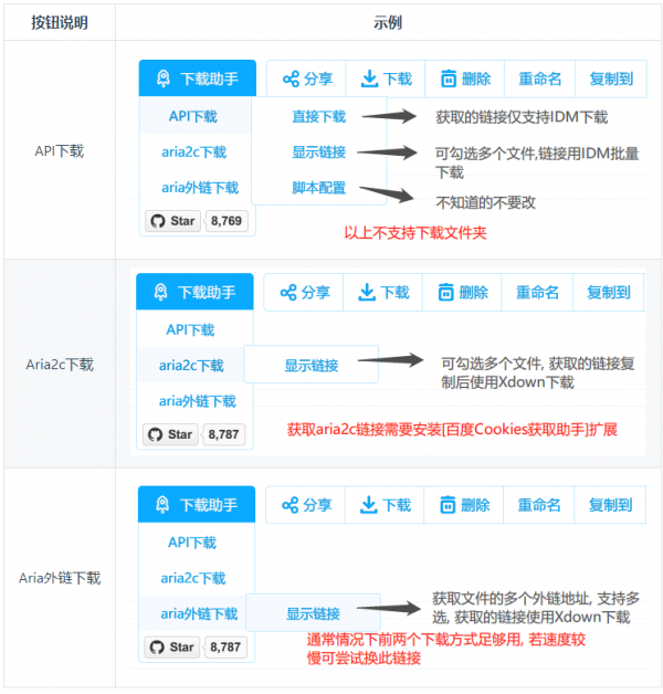 腳本安裝成功后會再百度網盤出現對應按鈕,含義如下: