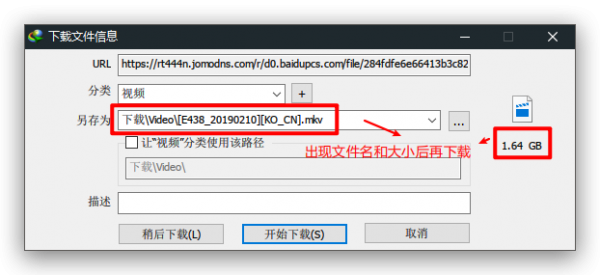 彈出idm新建任務對話框 , 等獲取到文件名和文件大小后方可開始下載
