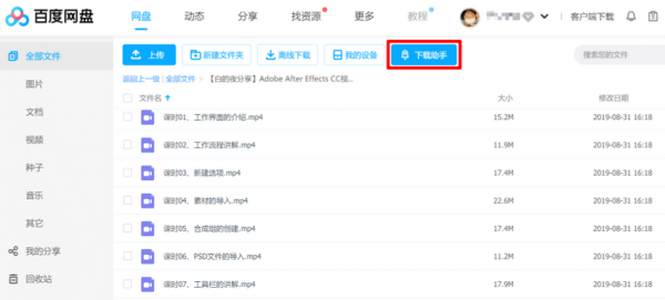 此時來到百度網盤的頁面刷新,看看下載助手出現了吧!