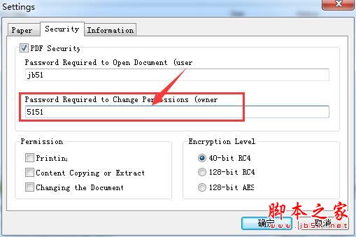 8、Permission是操作PDF的權限設置,有三個功能,分別是打印、內容復制或提取、改變文檔,可以三個都選擇