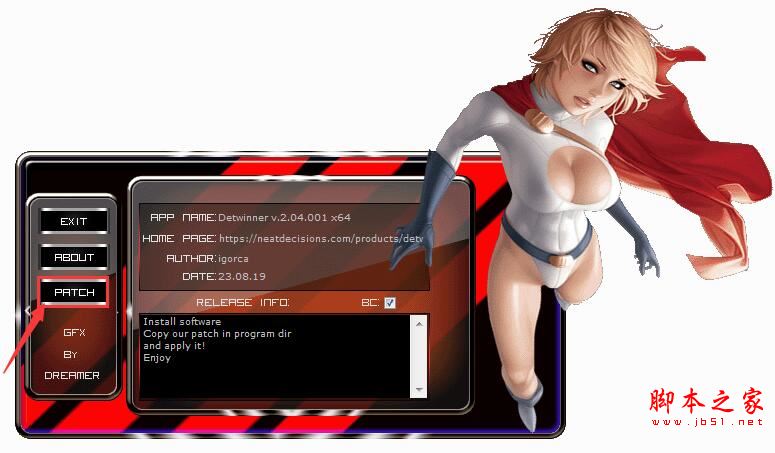 10、雙擊運(yùn)行detwinner.v.2.04.001.x64-patch.exe補(bǔ)丁,點(diǎn)擊左例第三個(gè)PRTCH,激活到些結(jié)束