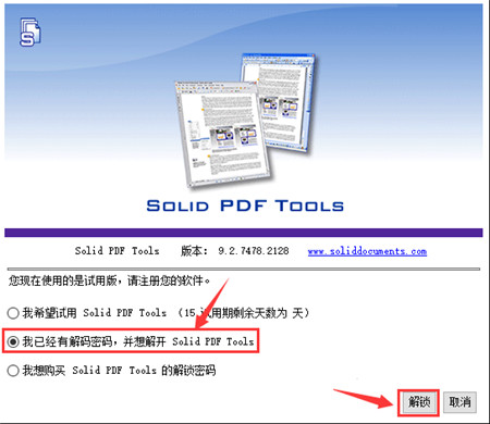 我們勾選“我已經解碼密碼,并想解開Solid PDF Tools”,然后點擊“確定”按鈕,彈出如下窗口,