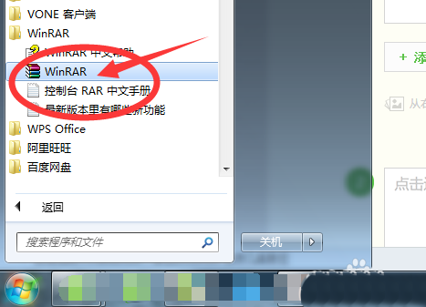 1、點擊【開始】菜單,在里面找到【WinRAR】軟件,并雙擊打開(不同的操作系統軟件所在的位置可能不一樣),如下圖,我使用的是Win7系統,需要在【所有程序】中找。