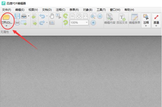 2、迅捷PDF編輯器打開后,我們就可以進行操作了,首先,我們需要將PDF文件添加到程序界面。這個通過點擊“打開文件”就可以實現了。