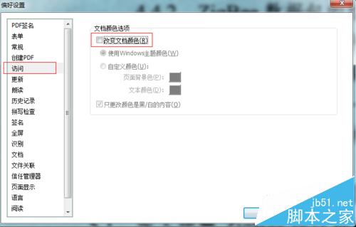 2、選擇‘訪問‘->勾選‘改變文檔顏色'