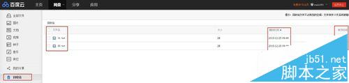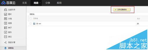 2、在網頁左中的位置會顯示我們現在所在的位置為回收站,在右側會顯示我們曾經刪除過的文件(文件名,大小,時間,回收站保存時間為10天)