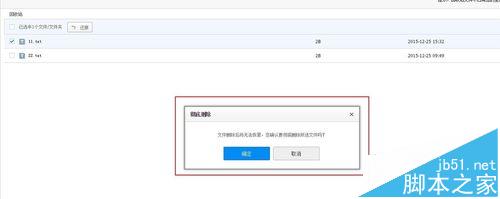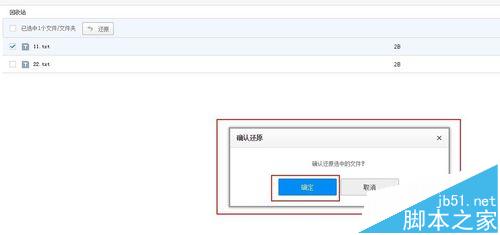 5、當我們選定某個文件選擇還原,會彈出確認還原對話框,選擇確定,文件將還原到原來的那個目錄。