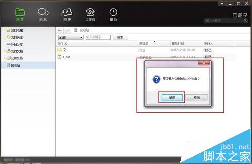 4、當我們選定某個文件選擇徹底刪除,會彈出一個徹底刪除對話框,選擇確定將永久刪除。