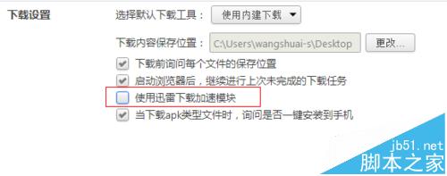 4、使用極速瀏覽器的用戶(hù),可以在工具--選項(xiàng)--下載設(shè)置中將“使用迅雷下載加速模塊”的勾選取消掉
