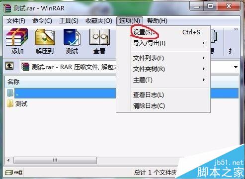 3、開啟WinRAR后,點擊菜單欄中的選項,然后選擇進入設置。
