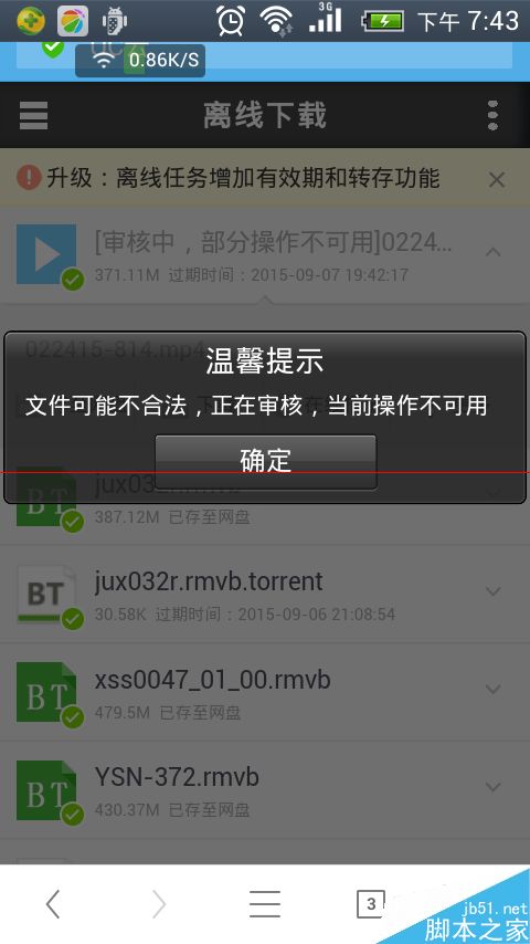 2、待資源離線完成后,會出現違規文件,無法轉存網盤。