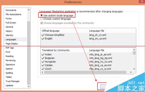 3、在單擊語言之后的右側點擊“Use system locale language”選項然后點擊“OK”