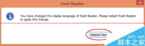 4、點擊“OK”之后彈出下圖所示對話框,選擇“Restart now”等待軟件重啟即可
