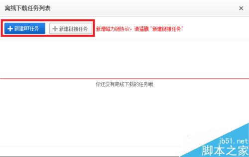 4、這時候會彈出一個對話框,有兩個選項分別是:新建BT任務;新建鏈接任務。如果你要下載的是種子資源的話就選-新建BT任務,如果是磁力鏈的話就選-新建鏈接任務。(種子的話找到文件就可以了,磁力鏈的話直接復制過來就好了)