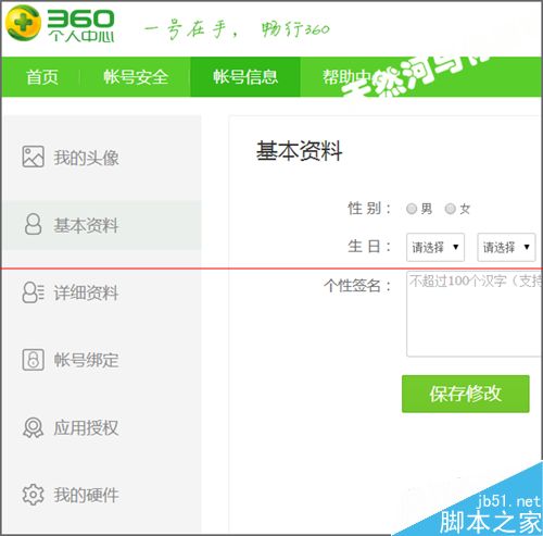 5、當我們點擊編輯其它個人資料后,在它打開的網頁中可以看到它默認顯示的是基本資料。