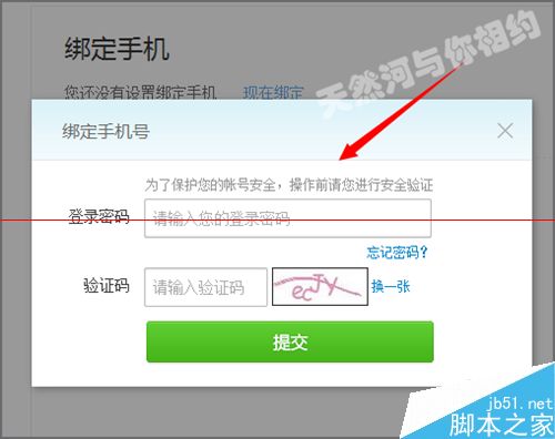 8、接著在它彈出的綁定手機號的面板中我們設置一個登錄密碼。輸入完登陸密碼之后,再輸入一下它的給證碼,然后點擊提交。