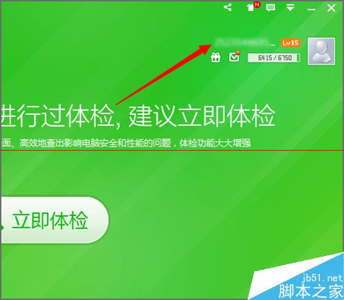 1、當我們剛注冊了一個360賬號,并開始使用它來登陸360云盤的時候,也許也會遇到這樣的問題,當它出現要用戶賬號綁定手機的時候,我們怎么登陸都是無法進行登陸的。這時我們在打開的安全衛士中,點擊一下它右上角的頭像。