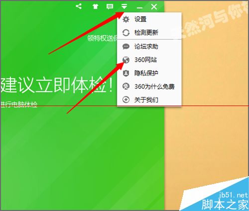 11、如果是不想在頭像中的個人賬號中來回進行點擊打開找到個人中心的話,也可以在安全衛士的界面中點擊它右上角的向下小按鈕,在它彈出的列表中點擊它的網站。