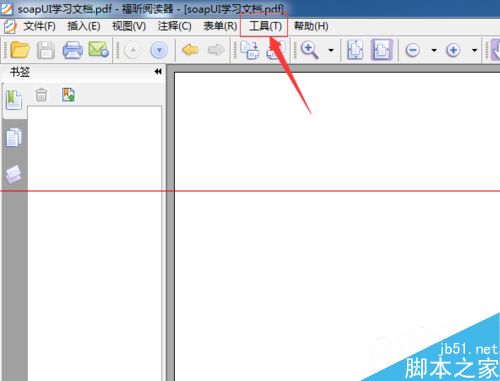 2、打開pdf文件之后,然后在菜單中選擇“工具”的選項。