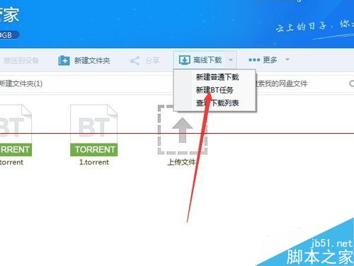 3、點擊如圖所示的“離線下載”——新建BT任務,或者直接雙擊剛才上傳的BT文件。