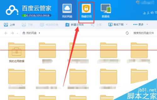 2、登錄成功后,單擊主界面上方的【隱藏空間】圖標按鈕。如下圖所示。