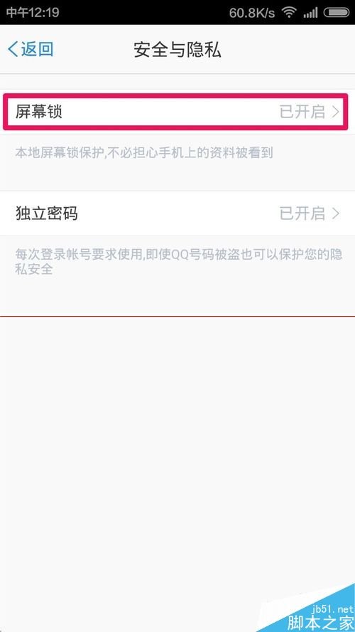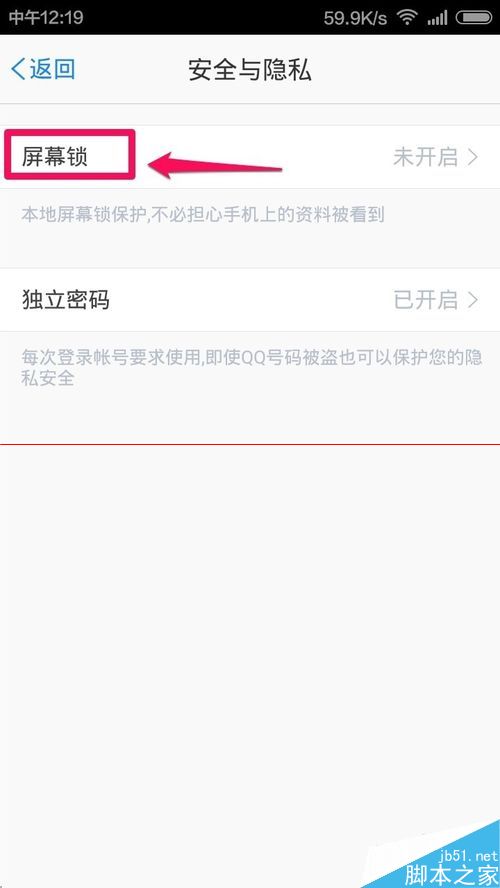 5、安全與隱私中點擊屏幕鎖打開進行設置!