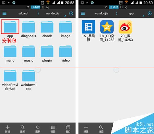 2、豌豆莢手機版默認保存的位置一般是SD卡中;如果沒有SD卡,那就是手機內存。只要打開SD卡/手機內存找到一個名為【 wandoujia 】的文件夾即可。
