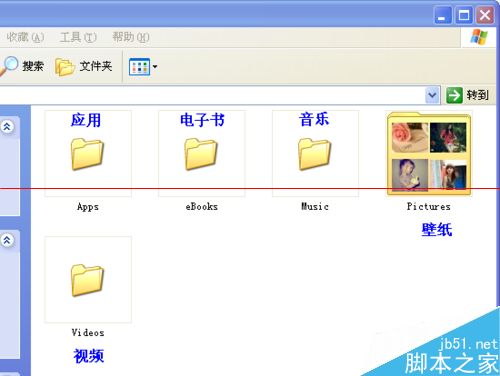 3、打開 wandoujia 之后,在這里面的每一個子文件夾,同樣對應了下載好的APP 、音樂、視頻、壁紙、電子書、等、、、