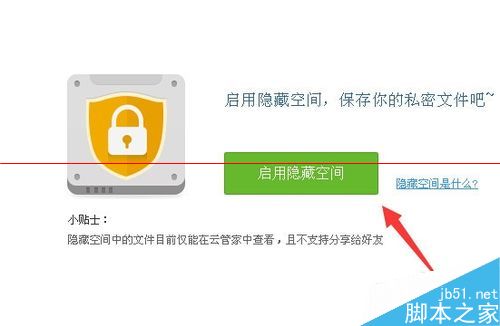 4、在初次使用百度云管家隱藏空間時(shí),需要點(diǎn)擊“啟用隱藏空間”。(如下圖)