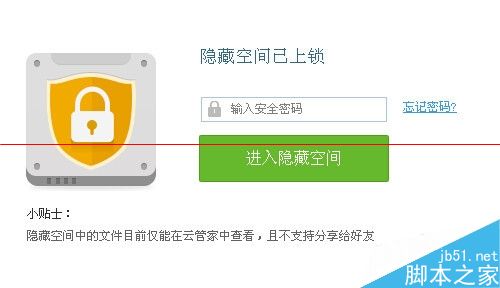 9、這樣就可以看到隱藏空間已經(jīng)鎖上,需要輸入安全密碼才能進(jìn)行訪問。(如下圖)